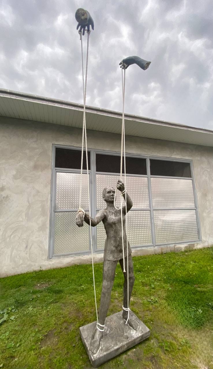 The ropes transmit direction rather than violence, suggesting a constant, accepted, and internalized form of control. The woman remains upright, yet her gestures are guided from the outside, turning the body into a space of tension between autonomy and submission.